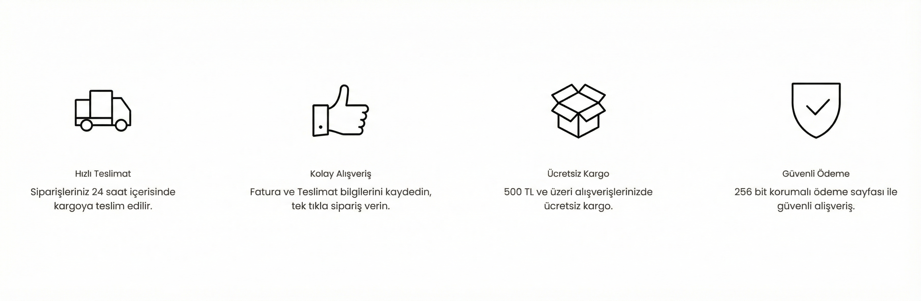 Özenle seçilmiş ürün kategorilerimizle kaliteli ve güvenilir bir alışveriş deneyimi sunuyoruz.